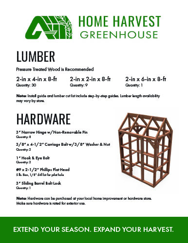 Home Harvest Greenhouse Kit – Lumber & Hardware List